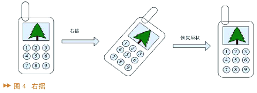 系统设计了六种动作,他们分别是左摇、右摇、下摇、上摇、图片左转、图片右转。图4中的图形象地说明了其中的两个动作,其它的动作与此类似。