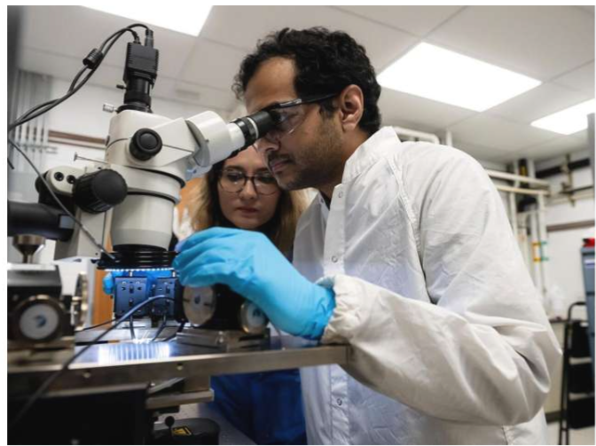 Aida Ebrahimi(左)和Vinay Kammarchedu开发了一种改进的场效应晶体管设计,能够驱动极其灵敏且坚韧的传感器。图片来源:Jaydyn Isiminger/宾夕法尼亚州立大学